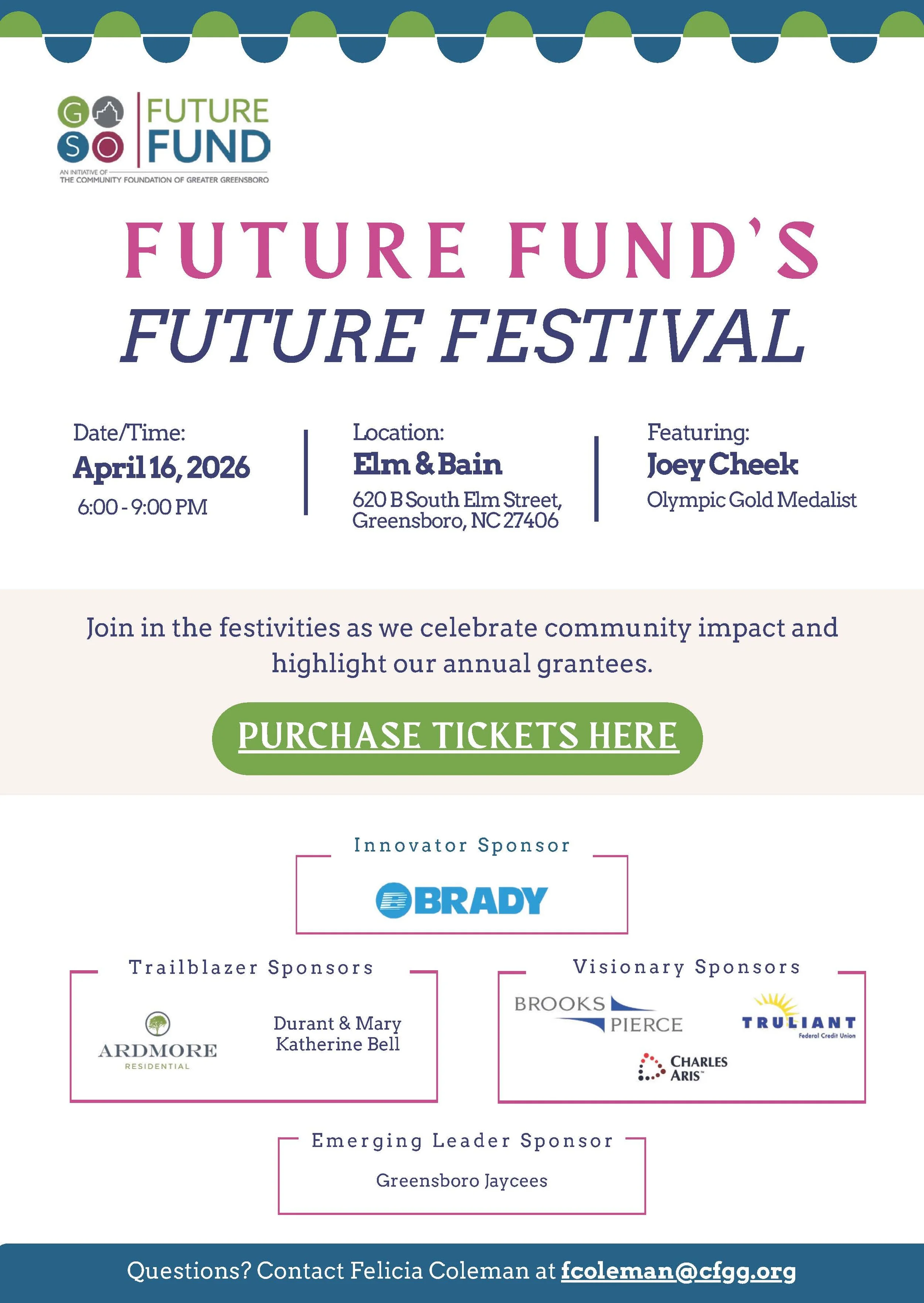 This event presents a great chance to connect with young professionals and draw inspiration from visionary community leaders, while also highlighting the 2025 Future Fund grantees. Our evening will feature a special guest, Greensboro native and three-time Olympic Gold Medalist, Joey Cheek. It’s an event you won't want to miss!